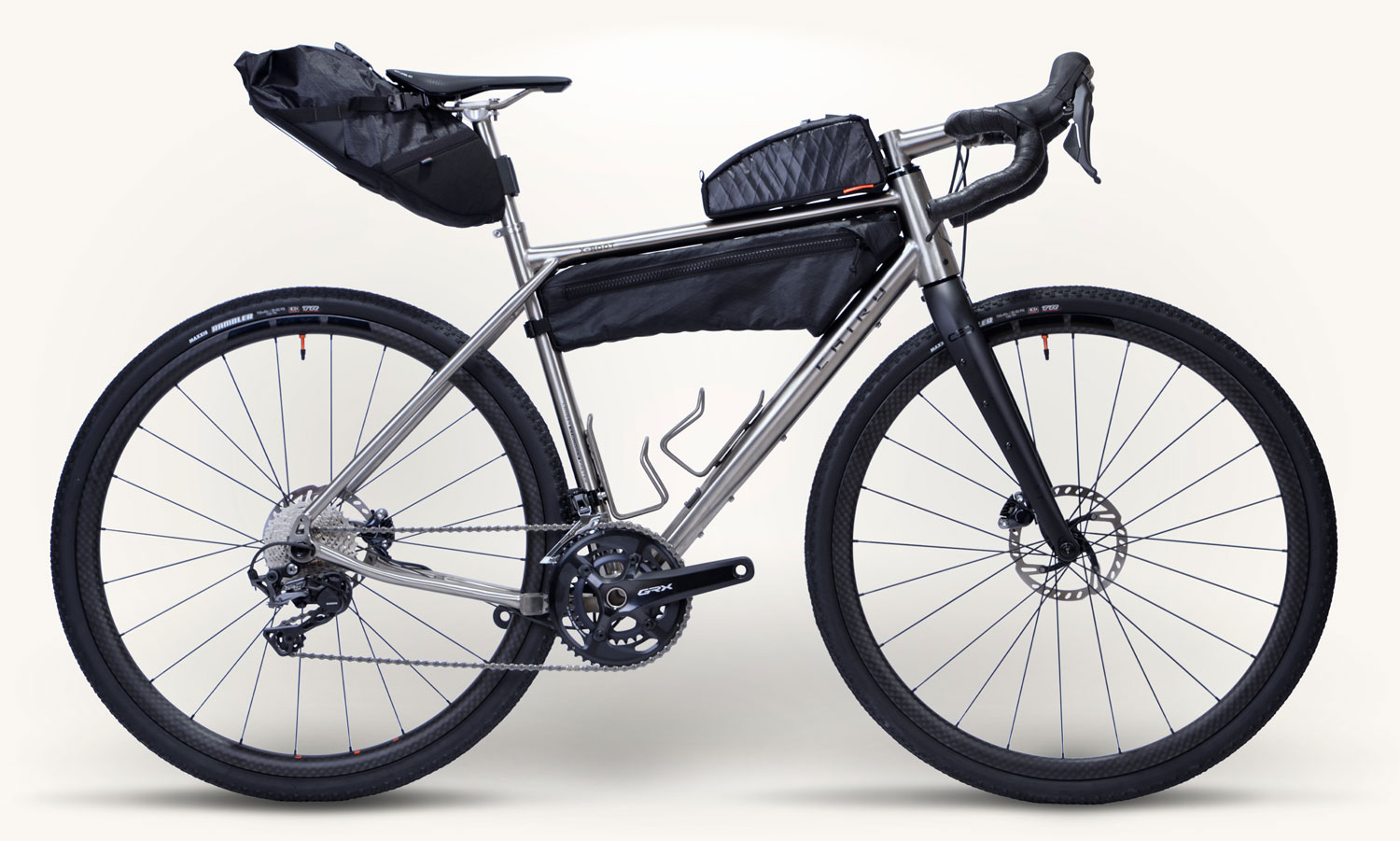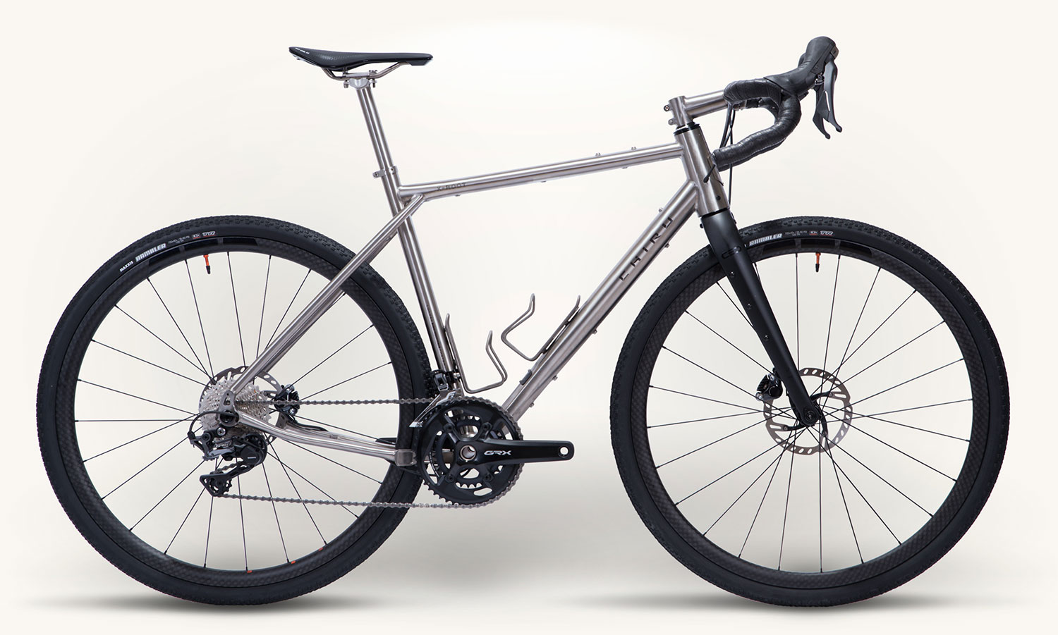 La Chiru X-Root presenta uno stemma in titanio sul tubo di sterzo per un look vintage. Può anche essere personalizzata con una targhetta identificativa in titanio.